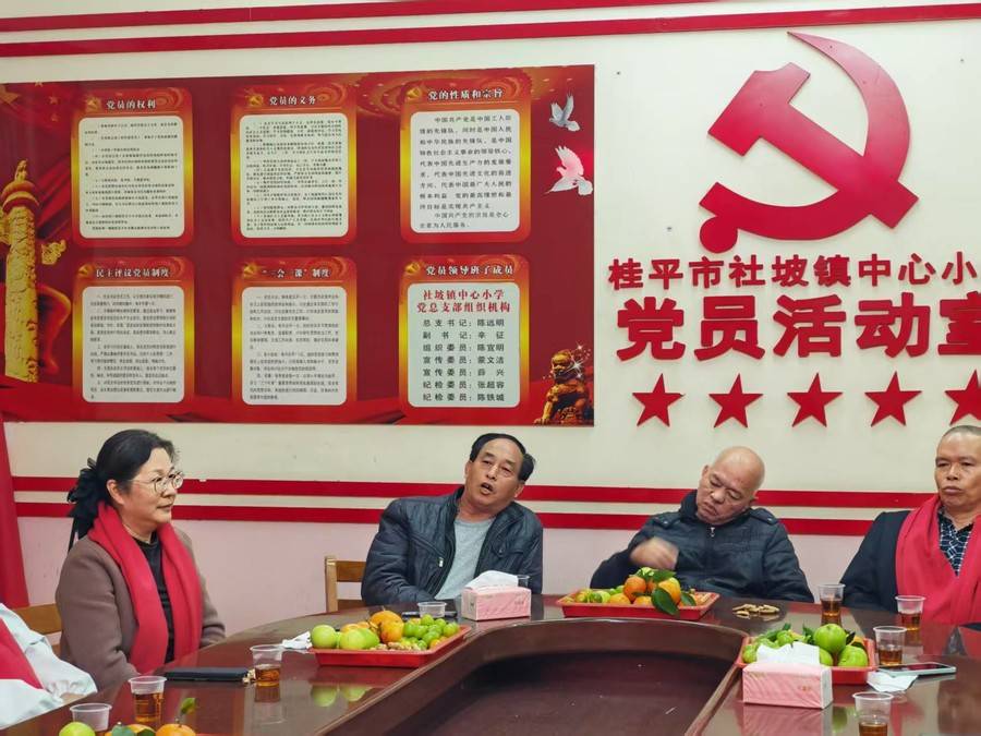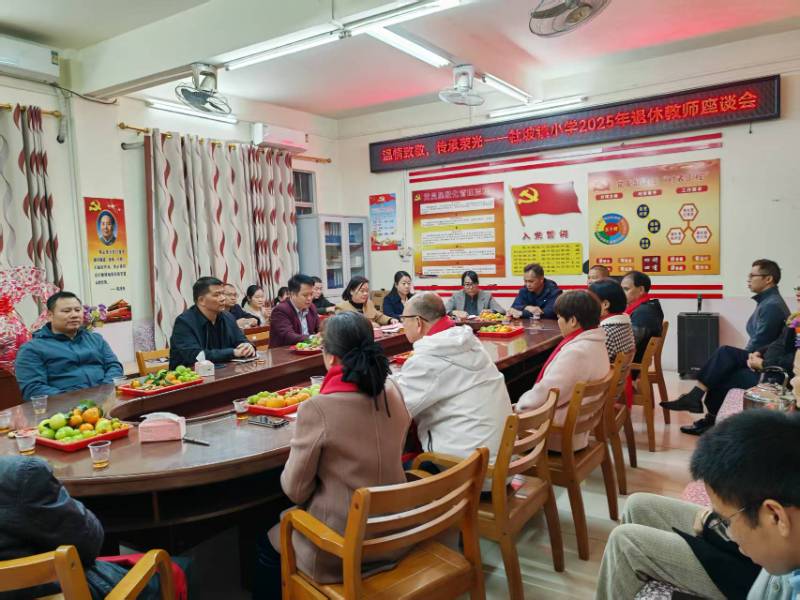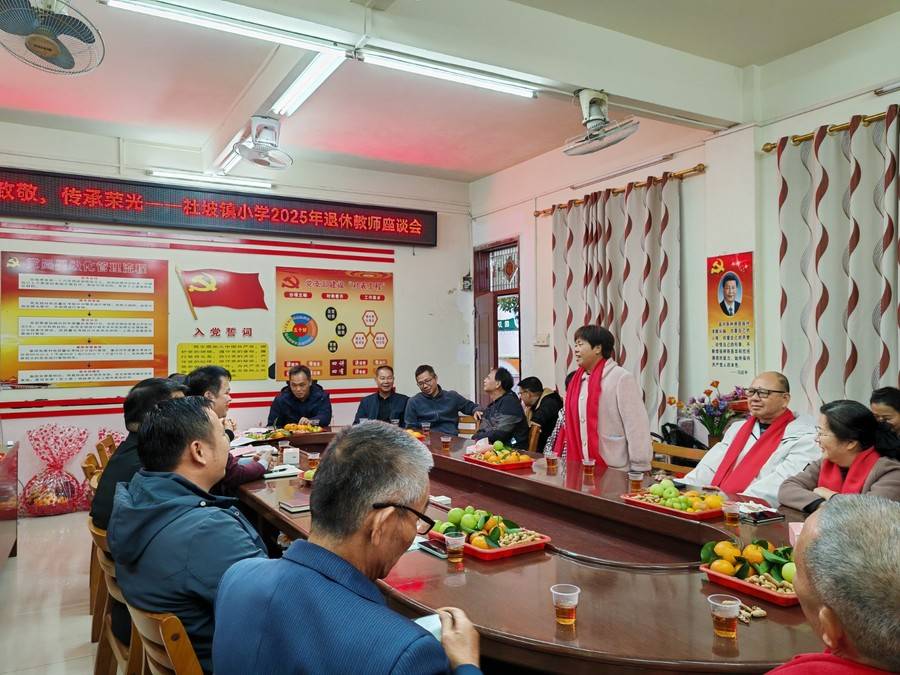 岁月如歌,桃李芬芳。为深入践行我镇小学工会“竭诚服务职工”的宗旨,致敬深耕教育沃土的退休教师,传承敬老美德,增强教职工退休的荣誉感、仪式感与归属感,延续师生、同事情谊,让教育薪火代代相传,12月24日下午3点,桂平市社坡镇中心小学在党员活动室隆重举行2025年退休教师座谈会。